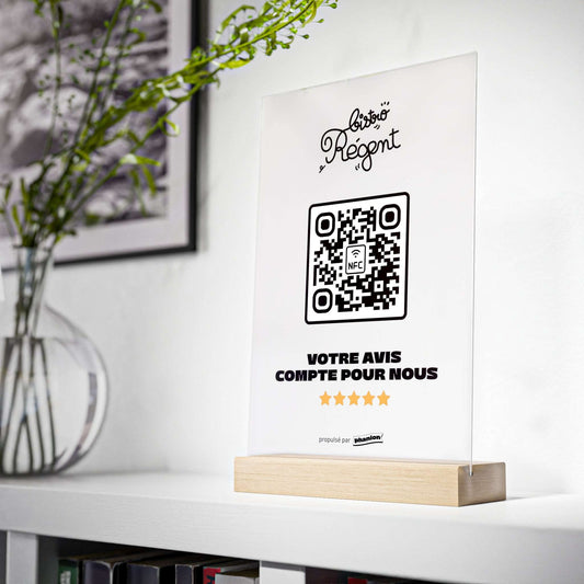Grâce à la technologie NFC et QR Code intégrée, vos clients peuvent laisser un avis en quelques secondes.