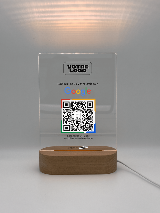 Plaque NFC & QR code Avis Google - LED - Rectangulaire