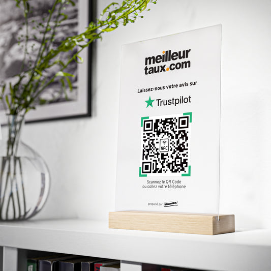 Récoltez des avis 5 étoiles en toute simplicité grâce à nos plaques d’avis Trustpilot NFC et QR code sans contact.