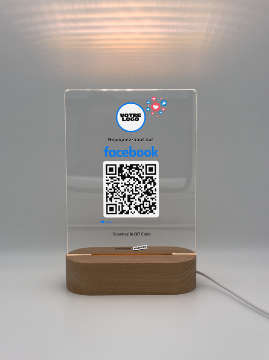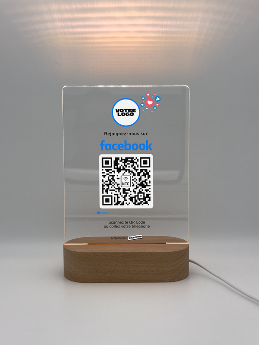 Plaque NFC & QR code Facebook - LED - Rectangulaire